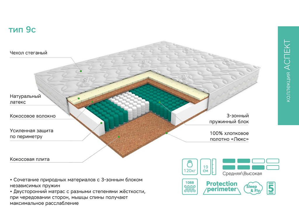 Матрас Аспект Тип 9с (Премиум чехол Care)
