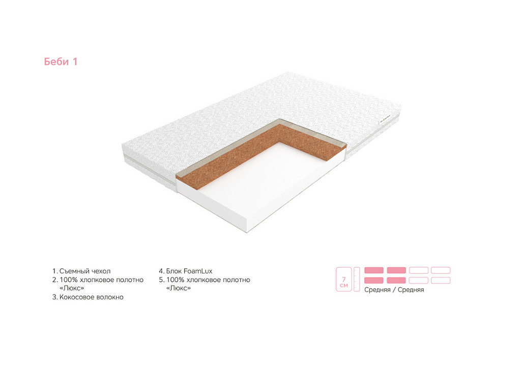 | Материал | Кокосовая койра, Хлопковое полотно, Чехол, FoamLux |