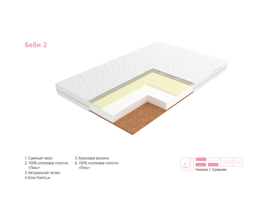 | Материал | Кокосовая койра, Латекс, Хлопковое полотно, Чехол, FoamLux |