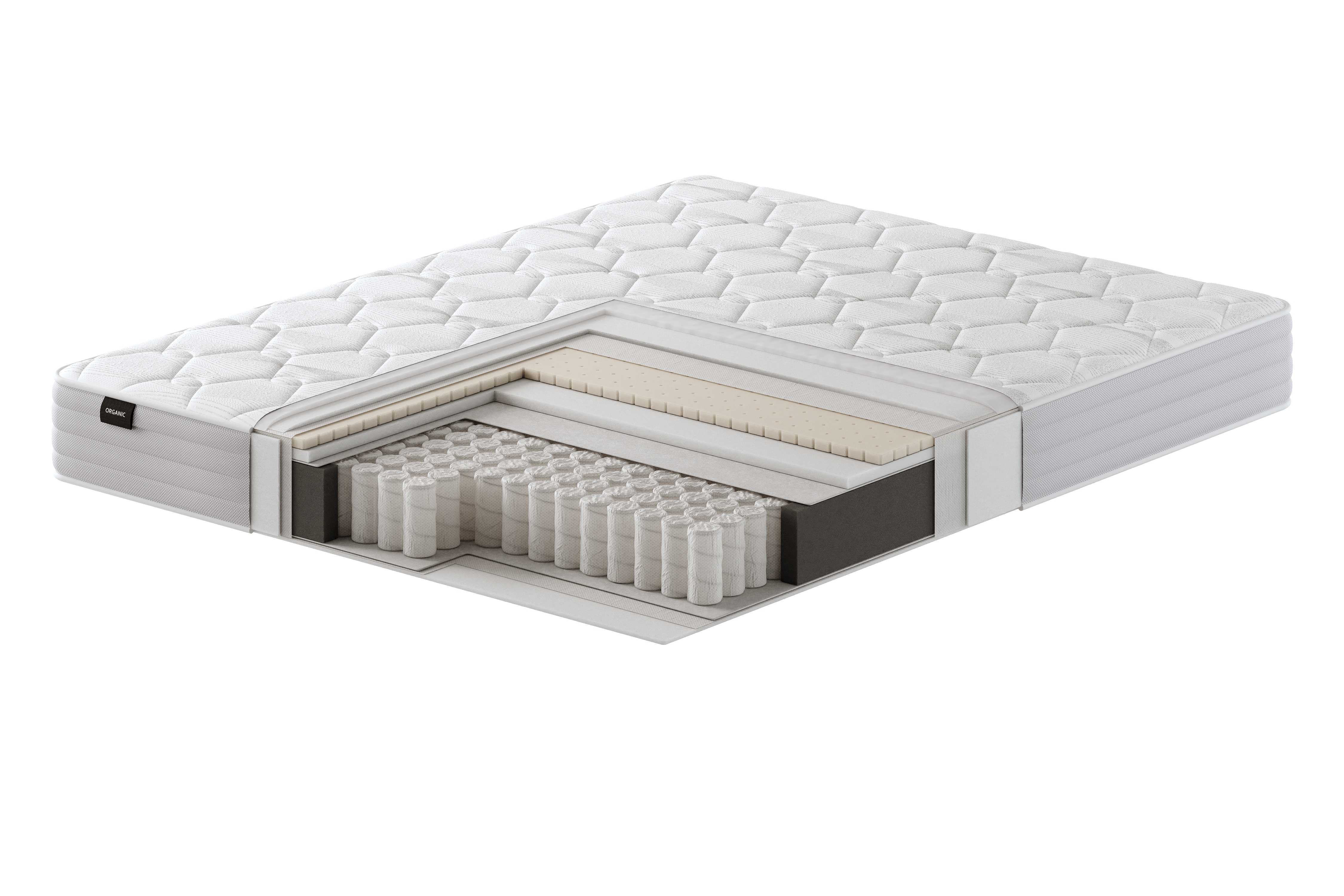 Гипоаллергенные материалы, бесшумная конструкция и надежная склейка HotMelt без запаха делают матрас безопасным и долговечным. Сертифицирован по стандарту OEKO-TEX®.