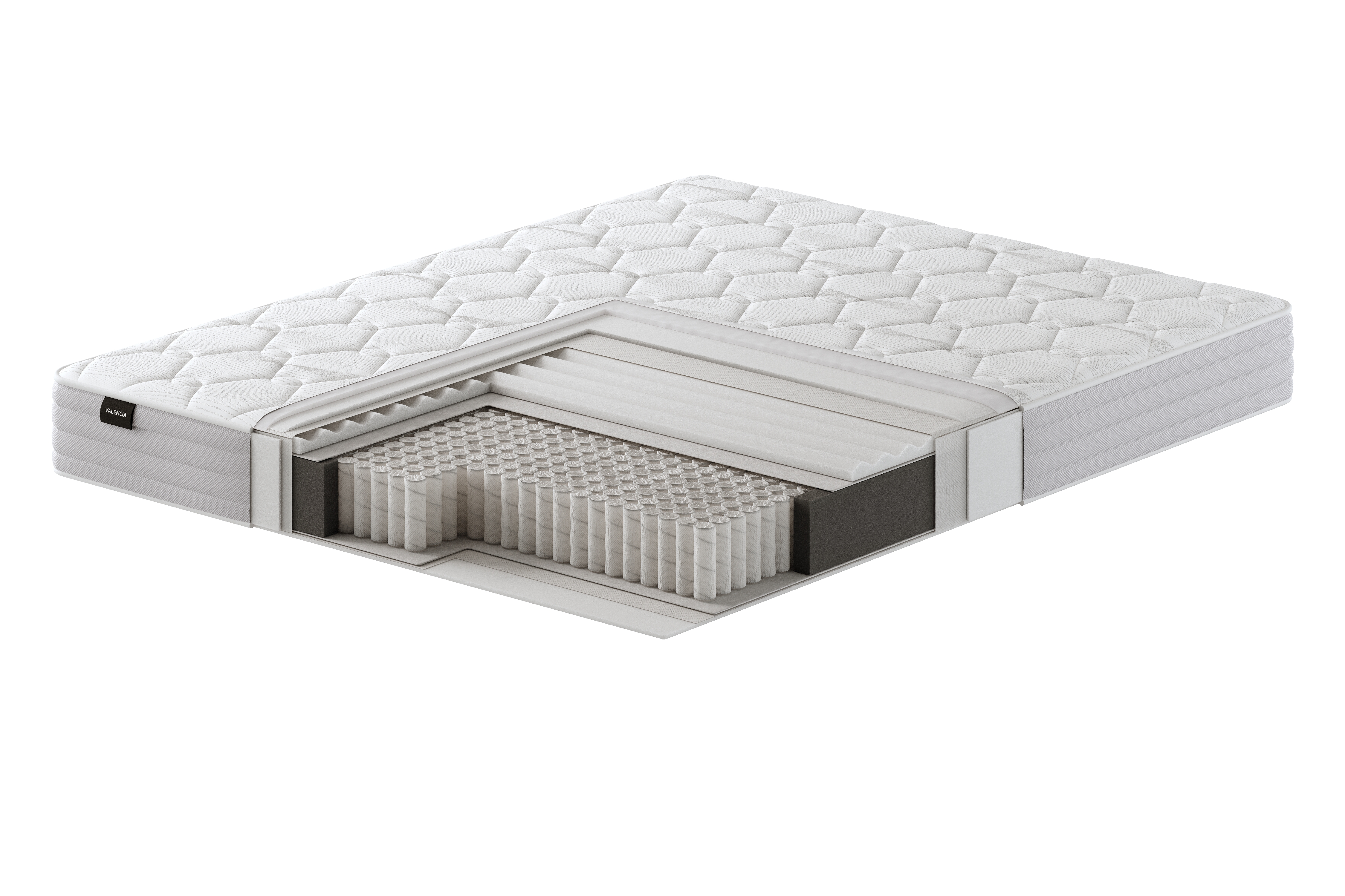 Гипоаллергенные материалы, бесшумная конструкция и надежная склейка HotMelt без запаха делают матрас безопасным и долговечным. Сертифицирован по стандарту OEKO-TEX®.