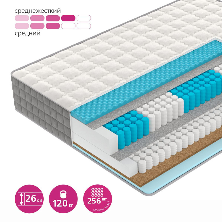 Практичный матрас с 5-зональным блоком независимых пружин и оптимально сбалансированным уровнем жесткости. Комбинация кокосовой койры и уникальной пены AirFoam качественно распределяет нагрузку по всей поверхности матраса и бережно поддерживает тело спящего в правильном положении. Особое внимание в этой модели привлекает чехол с геометричной стежкой и бурлетом из плотной мебельной ткани с природным рисунком.