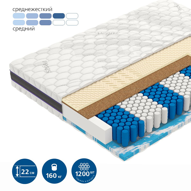 | Climalatex | Разновидность латекса с усиленной перфорацией и повышенной вентиляцией. Имеет рельефную форму с семью зонами комфорта и микромассажным воздействием. Надежно подстраивается под контуры тела, обеспечивая расслабление. |
