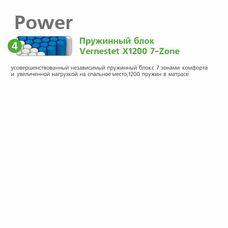 | Medizone R1000 | Уникальный блок независимых пружин из стали с выраженными зонами. Сбалансированное распределение зон по длине матраса наиболее эффективно учитывает анатомию тела человека. Точно реагирует на нагрузку, обеспечивая оптимальный ортопедический эффект. Диаметр пружины 60 мм. Высота пружинного блока 140 мм. |