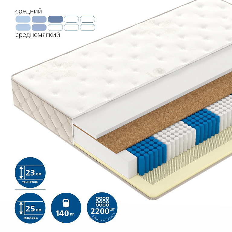 Однородный защитный слой из волокон льна, изолирует пружинный блок от мягких настилочных слоев матраса и продлевает срок их службы. Волокна льна обладают антисептическими свойствами и защищают от электростатического напряжения. |