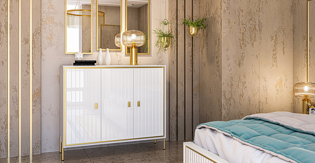 Люксор – это игра света и тени в гранях фасада; безупречное сочетание бликов глянца, зеркальных отражений и приглушённого чарующего сияния металла. Строгая геометрия форм смягчена игривым характером золотой фурнитуры и легкостью прозрачных стеклянных витрин. Эта коллекция мебели современный тренд, который достоин стать классикой!