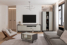 Модули, содержащие витрину продуманы таким образом, чтобы вы могли легко разместить свои любимые аксессуары, они не будут спрятаны за фасадом. Задняя стенка в модулях чёрного цвета, что так же подчёркивает контраст и глубину.